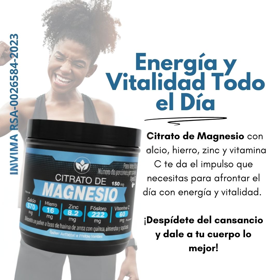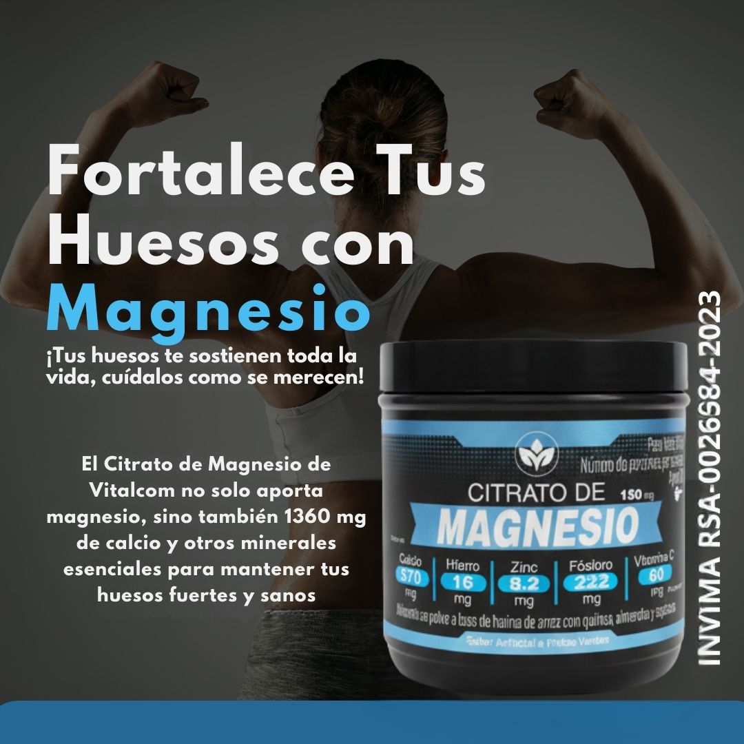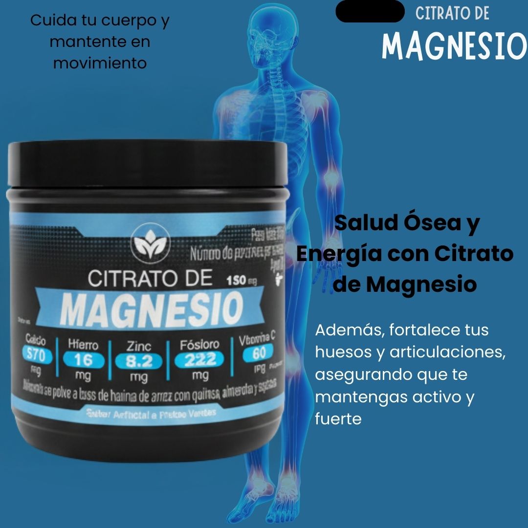 El Citrato de Magnesio es un alimento en polvo que aporta 500 mg de magnesio por porción, combinado con calcio, hierro, zinc, fósforo y vitamina C. Su fórmula apoya la función muscular, el bienestar óseo, la energía diaria y contribuye al equilibrio general del organismo.